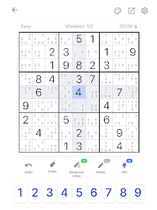 Solve the easy level of daily Sudoku puzzles for fun, enhance logical thinking ability with medium/hard Sudoku levels. The game has the functions that to add or remove notes by turning on the memo during gameplay. Did you make a mistake? No problem, there are undo and hint functions! Don't give up!!