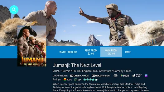 Movies, anywhere. Want to buy, stream, rent or watch them for free? Get the free Vudu app and instantly watch movies and TV shows wherever and whenever you want, on your phone or on the device of your choice. Join us freely – no subscriptions and no contracts to sign here! Watch new movies and shows weeks before they hit the shelves and other subscription streaming services. Stream with stunning clarity and sound in up to 4K UHD, with Dolby Vision HDR and Dolby Atmos audio on select devices. Or watch thousands of titles free with limited commercials with Vudu Movies On Us – now also on the Android TV app.
