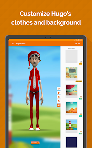 You can rate Hugo’s translations and save your favourite ones, adjust Hugo’s speed, customize his clothes and background in Hugo’s Store and much more!