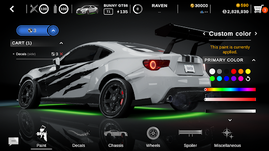 Of course, it's not just about the mechanics you'll also want to make your car look great. With a huge selection of wheels, spoilers, decals, and colors, you can customize your ride to your heart's content. And with our 360° camera, you'll be able to admire your handiwork from every angle.