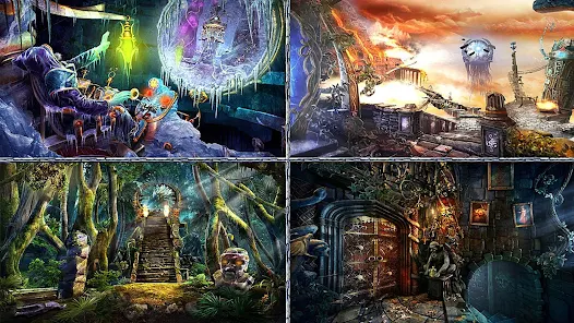 Mysteries and Nightmares: Morgiana takes you on a journey through multiple worlds to picturesque jungles, full of life and vibrant colors, to frozen caverns with unimaginable eerie creatures and the scorched land of Anazgharod, the realm of fire. Though, you won’t be alone in your quest. An amusing speaking mouse will help you find hidden objects, reach the items beyond your grasp and solve mindbending puzzles. By the way, this hide and seek game features a remarkable collection of minigames. These are classic board games like tangrams, jigsaw puzzles and unblock games, but also a few match 3 levels and more original brainteasers.
