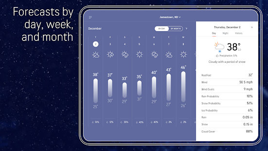 The AccuWeather forecasting and severe weather alerts you know and trust. From local weather updates to WinterCast snow alerts, get the weather forecast you can rely on. With indepth weather news, forecast updates, free weather alerts, plus today’s forecast and much more. Find out what makes AccuWeather the best as a trusted, free weather app. It’s the weather tracker you need!