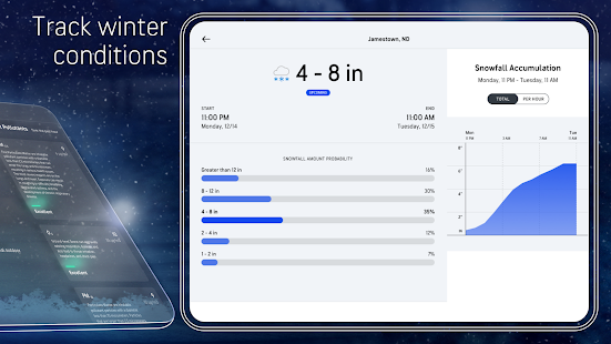 • WinterCast™: winter weather forecasts giving you advanced warnings of snowfall probabilities and accumulation