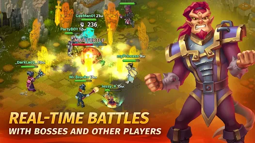 • Join a guild or create your own — complete guild assignments, raid powerful bosses, and compete in Guild Wars.