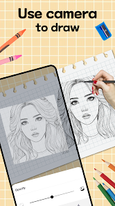 1. Draw with Camera: Simply choose a sample from our library or upload your own photo from the gallery. The app will project the image onto your canvas, perfectly aligned, so you can start tracing immediately.