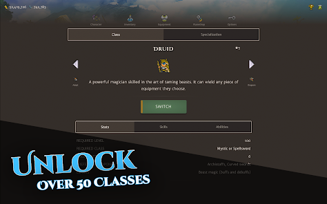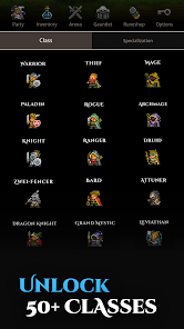 ★ Class System – gain experience and unlock over 50 unique classes and specializations. Start as a thief, mage or warrior and choose your path.