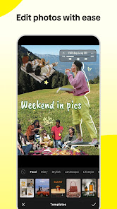 You'll find a whole library of intuitive templates, stickers, filters and fonts for your photos and videos.