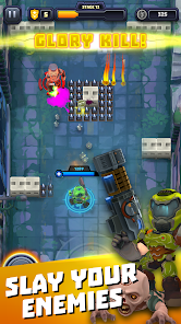 Shoot through mini demon hordes in Mighty DOOM. This singletouch, topdown shooter set in the animated DOOM universe puts you at the center of the fight as you rip and tear through demon hordes from the fiery depths of Hell.