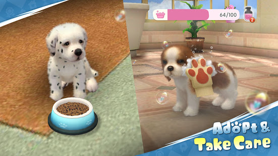 Adopt Puppies is a simulation game where you can feed, train, play, and dress up your favorite puppies. After choosing among more than 70 unique dogs, you can design your home from a variety of furniture, decoration, and layouts. Then, you can invite or visit your friends to socialize with other puppies at home.