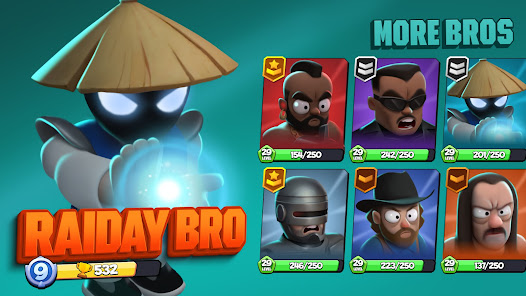 Compete for Glory: Ascend the ranks in our Championships and dominate the Leaderboards to claim the prestigious title of Bro Royale champion. Unlock a plenty of rewards, collect an arsenal of heroes, and customize them with unique, lethal skins. Each bro's collection of skins not only transforms their appearance but also adds to the intensity of the battlefield.