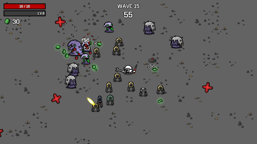 · Collect materials to gain experience and get items from the shop between waves of enemies