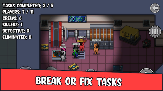 The assassins, to win, must assassinate the crew and sabotage the different tasks causing chaos, this will facilitate the murders and also, they will be able to create alibis to deceive the other crew members.