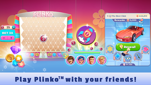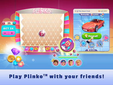 Create or join a team of up to 30 members! Play Bingo to generate Plinko chips and drop them in to get a jackpot and help your team progress! Team members can trade symbols, chat between themselves, and more. There will always be a friendly face to help you complete community goals along the way!