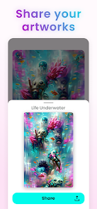 Once you have your completely unique, original artwork; feel free to share it with friends or hop on the latest #AIPainting trend on social media.