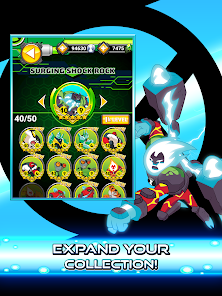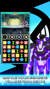 Match tiles on the battle board to charge up your alien powers! Brace yourself and unleash fire storms, uppercuts, crystal swords, laser beams, stink blasts and so much more!