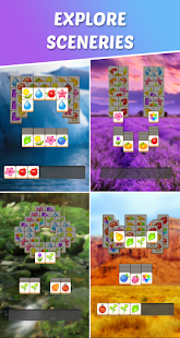 ► Explore Discover unique and relaxing sceneries displayed in the background while you master matching tiles.