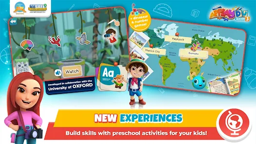 Season 3 brings an extra set of activities! Let your children discover over 30 English vocabulary words with the vocabulary game Word Explorer, and go on a mission to travel to six countries with the Travel Around the World experience.