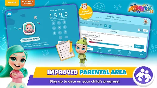 Supervise your child’s experience through a dedicated parental section that keeps track of their progress. Create multiple profiles for your kids and get recommended activities for each through progress reports. With Season 3, you can even keep an eye on your children's playtime by setting a screentime limit.