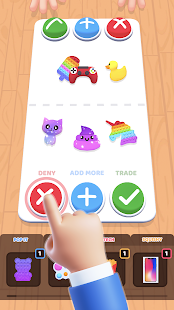 Throw your toys onto a table and see what your opponent has to offer. Is the deal worth it? Accept the fidget trade to seal the deal or demand more items—it’s up to you!