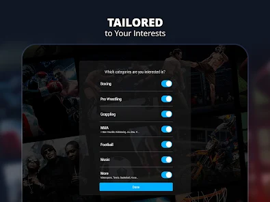 • Boxing: Triller Fight Club, Top Rank/ESPN, PBC/Fox, Golden Boy, Matchroom, BKB, BKFC