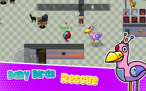 Pink Bird Monster will chase and catch you if it sees you, but it will stop if you're holding a baby bird. Your task is to collect and bring the baby birds back to their nest.