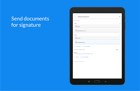 Sign documents and collect others’ signatures inperson on your mobile phone or tablet to execute contracts faster.