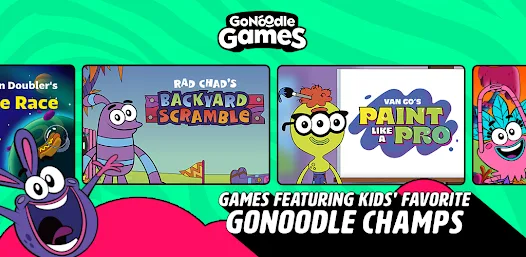 The free GoNoodle Games app features fastpaced minigames that get kids jumping, waving, ducking, and holding a pose to earn points, dodge obstacles, and have a ton of fun!