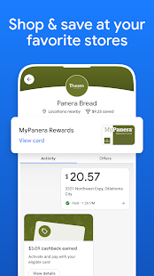+ See businesses where you’ve used Google Pay when you open the app. Get quick access to your transactions, loyalty cards, and activate offers.