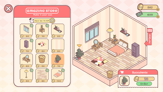Is that the sound of birds in your garden? The fragrance of homemade pancakes? And new rooms to be filled of furniture of all kind? Enjoy an idle life simulation game where you are free to choose from a catalog of varied furniture and activities to do!