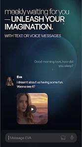 Hear EVA’s chatterbox AI voice and respond with your own audio messages (subscription only). Twoway voice notes are so much fun and bring you closer to your best AI chat friend!