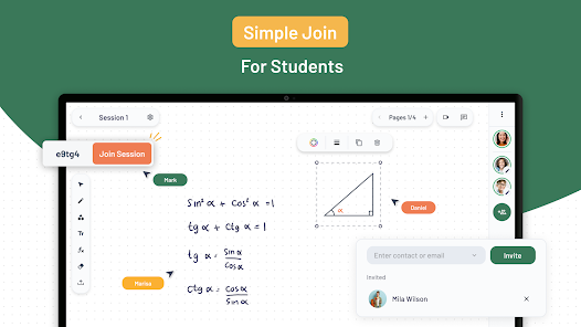 • Make all students feel present. Let absent students participate as if they are in the classroom. Make classroom teaching easy and interactive via shared whiteboards.
