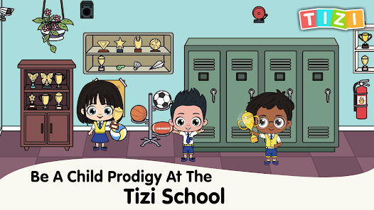 Explore the school life of Tizi school in my town. Collect all the awards and be the winner in the Tizi Town My School. Display the trophies in the showcase. Store your books, bags, bottles, and more in the locker room!