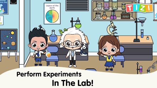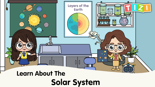 Become a scientist in the science lab. Learn about science topics with fun science games for kids. Be an expert in astronomy. Learn about the planets and solar system. Study the galaxy in the Tizi town school world!