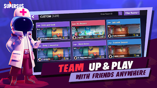 In Super Sus, you can match up with friends worldwide. Play the classic mode or challenge more players in Ranked! Chat with other players in real time voice chat! Survive or not, you will make friends from your local area, or from anywhere in the world! Prevent imposters from killing spacecrews. You can also share amazing ideas in workshop, where creating your own maps and roles are allowed