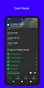 Every green dot represents a city or town. Tap on it to tune into the radio stations broadcasting from that city.
