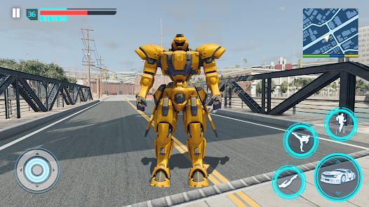This robot transforming game characters have special real powers. Real time robots transform fight into battle mechs. You can shoot a rope hero to a building and climb over the building to the top. Robot hero is very powerful. Muscle robot car combos with flying jet car and special machine guns can help you protect the world.