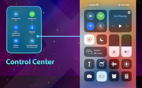 Smart Toggle for Silent mode, Airplane Mode, Bluetooth. With Control Center, you can customize more style, such as size, color, position, vibration.