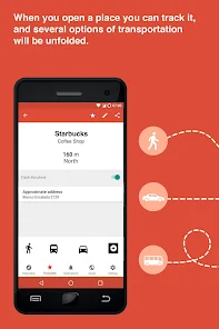 Exploration: Announces your actual position, nearby places, and street intersections while you are walking on the street, in a bus or traveling by car.