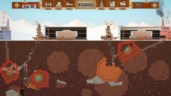 There are dozens of upgrades and new tools that will improve your oil drilling operation. You will need them to drill through rocks, deal with natural gas pockets, and prevent oil spillage! Don't forget to visit the saloon, the people there may have some very juicy business proposals for you!