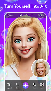 Powered by AI technology, this picture editor creates your favorite anime, caricature or cartoonify pics. Easily edit photos using camera filters for pictures and become your favorite 3d cartoon or artbreeder avatoon & avatar! All trending effects and filters including; toonify, face child, yellow head, beauty face portrait and +100 more with awesome background options and digital art layout. Use your selfie camera with this face app and super easy avatarify animation maker! You can share your masterpiece pics art on all social media platforms like İnstagram or on Facebook. Imagine you become your favorite cartoon princess or animation character with the amazing cartoonify filters and showing your toon me selfie on Snapchat with toon app comic maker.