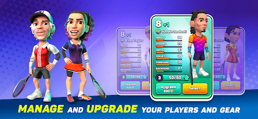 In Mini Tennis you will be able to win players, from common to epic ones, and upgrade them to turn your player into the most feared opponent on any court. Not only can you build your player, but you will also be able to fully customize it to your image with more than 100 customizable options from:
