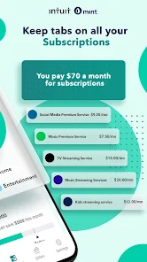 Mint is your personal finance manager and bill tracker it helps you track expenses, transactions, monthly budgets, account balances, subscriptions, expenses and taxes. We calculate your net worth and spending trends and help you with your budget plan. We’ll help manage subscriptions and notify you when prices go up.