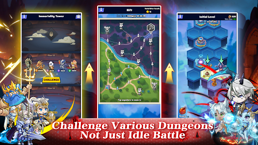 We've launched a brandnew gameplay mode called "Rift," adding exciting dimensions to our idle RPG. Players can strategically choose from three paths for their team to attack, earning abundant rewards by successfully clearing each level. Collect Rift Gems, insert them into each level, challenge them repeatedly to earn more stars, and unlock additional season rewards in this new Idle RPG game!