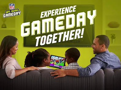 Experience Gameday Together! NFL RUSH Gameday is designed for kids to play fun games, customize their own avatars, watch awesome videos, and unlock cool digital gear from their favorite teams! Kids can play as they watch real NFL games, and complete a series of challenges based on passing, running and kicking the football.