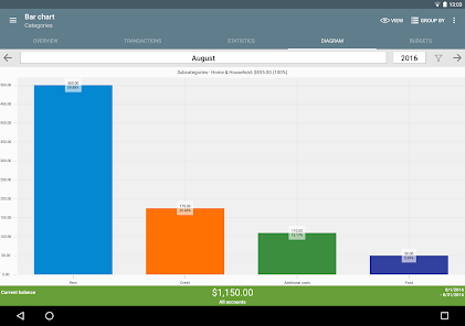 • Easily visualize your data as tables or graphs, understanding your income and expenses in a new way.