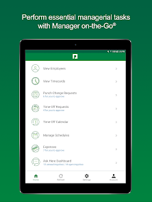 Because work doesn’t stop when managers are away from their desks, Manager ontheGo helps them make the most of their workday. This mobile tool allows managers and supervisors to complete essential management tasks involving their employees from anywhere, including approving hours worked, timeoff requests and expenses; viewing team members' schedules; and more.