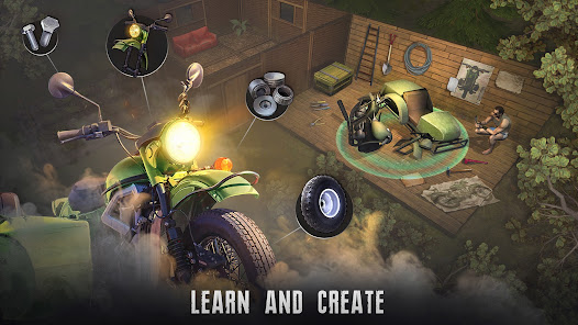 Features in our shooting games is the ability to create a motorcycle. Airplane crashes, military bases, bunkers, other survivors, abandoned shelters, mutants. After the last day on earth, there were a lot of lost things left behind. As you explore the open world, you can find resources, as well as improvements for your house and motorcycle.