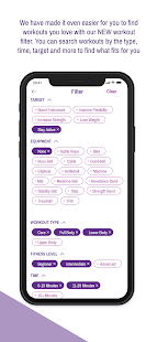 – Variety: Browse workouts by type, time, target, and more to find what’s best for you, whether you’re looking for a workout for beginners or want to try something new!