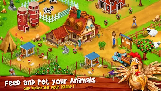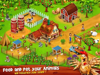 Enjoy the world of farming and cattle raising in Paradise Farm Island. Paradise Farm Island is an offline village farming game where you have to work as country side farmer in paradise island bay who work on lush green big farm & farmland. Do everything from farming, harvesting in your lush big farmland, cultivate and harvest the fresh crops like wheat, corn, coffee, tomato, kiwi & strawberry in village farm game. Raise cute frenzy animals like chickens, goats and cows, do farming, harvest diverse fresh crops in village big farm game to make your Paradise Farm Island game a success! Unleash your green side in Paradise Farm Island game where fun never ends, work as a farmer in village, do harvest, farming, raise poultry animals, manage dairy farms animals or livestock like goats, chickens, and cows in offline farming game. Take care of your paradise farm, harvest fresh crops in your farm to produce the healthiest & fresh food ingredients in offline farming game. Then sell your produce to a nearby city via delivery truck, fulfill orders and expand your farm village in this offline farming game. Paradise Farm Island is a virtual farming simulator game, in which you will be experienced from a farmer, a chef moreover a businessman. Uncover the mysteries of your farm paradise island, find all the bay farm game hidden treasure & start writing your own village farm game!