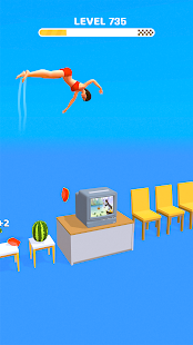 Explore rooms with different furniture like tables, chairs, bottles, shelves, freezers, lamps, and other obstacles that can get in your way to bed. Flip the ragdoll body over anything like doing a water bottle flip.